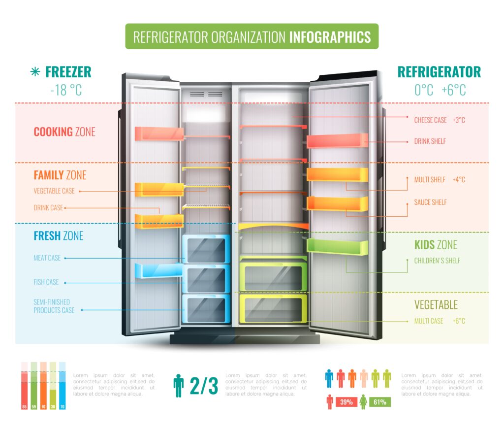 Wärme steigt auf, auch im Kühlschrank. Deshalb hat jede Ebene eine andere Temperatur und ist für bestimmte Lebensmittel ideal. Wenn du das beachtest, halten deine Lebensmittel deutlich länger.